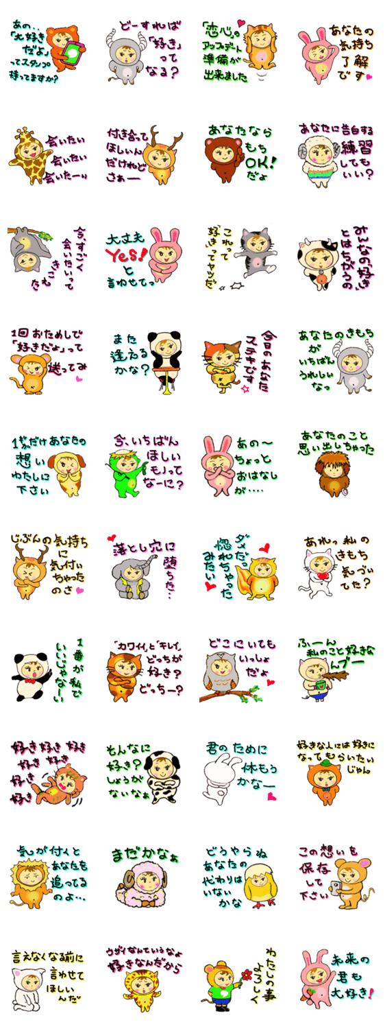 恋愛マスターズ NRGsendai コメントをどうぞ そのままではちょっと恥ずかしい一言でもきぐるみを着ていれば照れ隠しになるはず!きっとあなたの背中を押してくれることでしょう このスタンプどう思う?!↓クリックで投票♪好き (0)かわいい (0)かっこいい (0)おもしろい (0)使いやすそう (0)欲しい (0)萌え (0)ほっこりする (0)おしゃれ (0)ゆるい (0)こわい (0)ウザい (0)キモい (0)ムカつく (0)持ってる (0)癒される (0)セクシー (0)個性的 (0)私は買わない (0)誰かプレゼントして! (0) 購入・プレゼントする Facebookでシェア Twitterでシェア