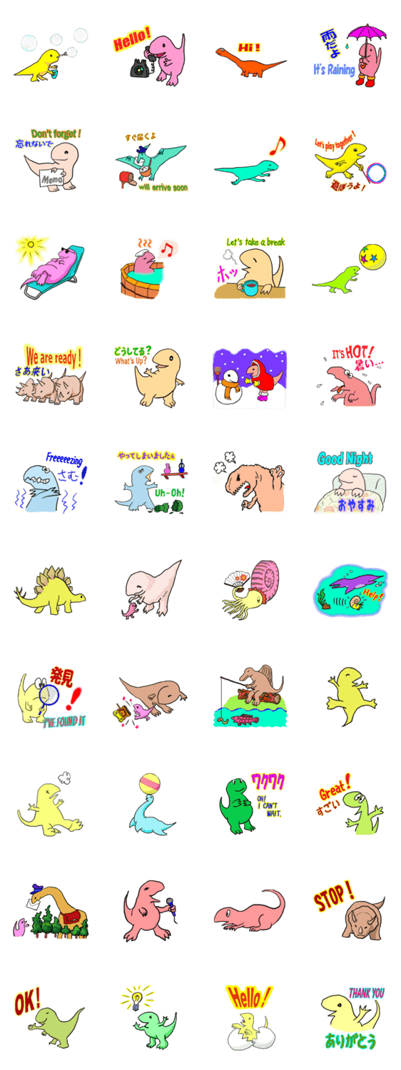 恐竜と仲間たち Ittoriki コメントをどうぞ ゆかいな恐竜や中生代の生き物たちのスタンプです。登場するのはT. rexの他、トリケラトプス、ステゴサウルスなども。 このスタンプどう思う?!↓クリックで投票♪好き (0)かわいい (0)かっこいい (0)おもしろい (0)使いやすそう (0)欲しい (0)萌え (0)ほっこりする (0)おしゃれ (0)ゆるい (0)こわい (0)ウザい (0)キモい (0)ムカつく (0)持ってる (0)癒される (0)セクシー (0)個性的 (0)私は買わない (0)誰かプレゼントして! (0) 購入・プレゼントする Facebookでシェア Twitterでシェア