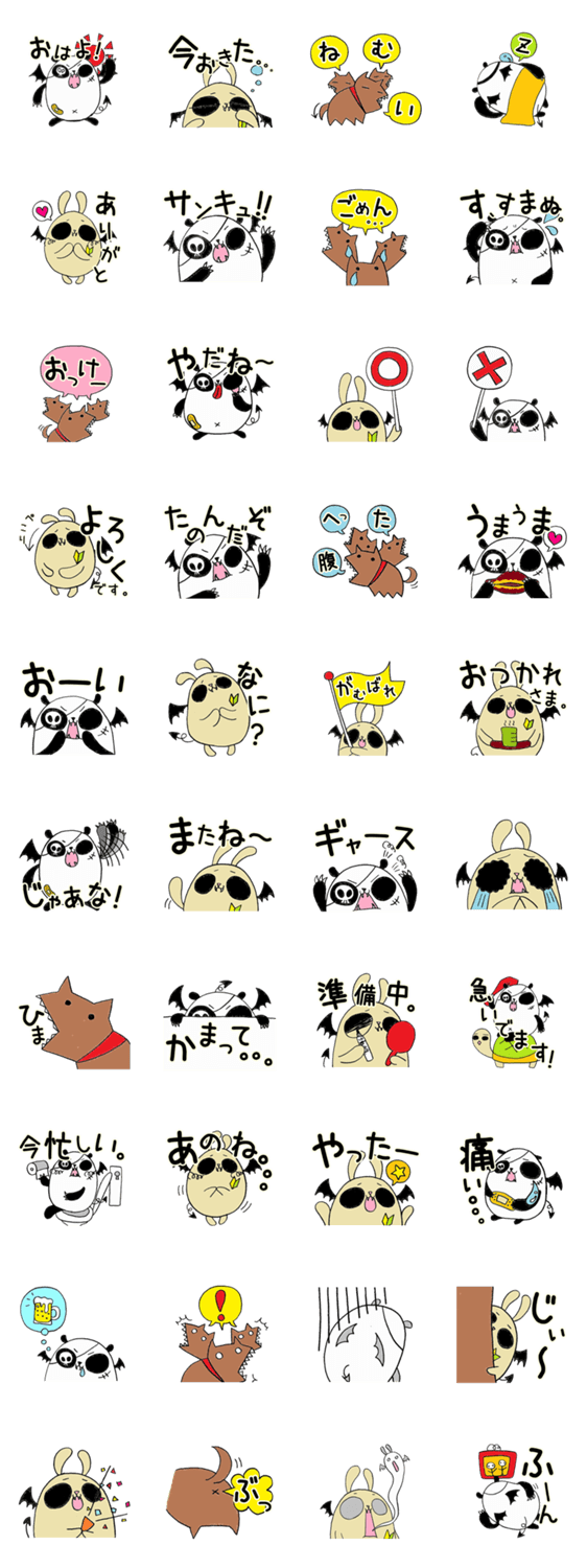 悪鬼的熊猫団 つぅ コメントをどうぞ でびぱん(パンダ)、でびうさ(見習いうさぎ)、けろちゃん(ケルベロス)の悪鬼的熊猫団。日常スタンプです。 このスタンプどう思う?!↓クリックで投票♪好き (0)かわいい (0)かっこいい (0)おもしろい (0)使いやすそう (0)欲しい (0)萌え (0)ほっこりする (0)おしゃれ (0)ゆるい (0)こわい (0)ウザい (0)キモい (0)ムカつく (0)持ってる (0)癒される (0)セクシー (0)個性的 (0)私は買わない (0)誰かプレゼントして! (0) 購入・プレゼントする Facebookでシェア Twitterでシェア