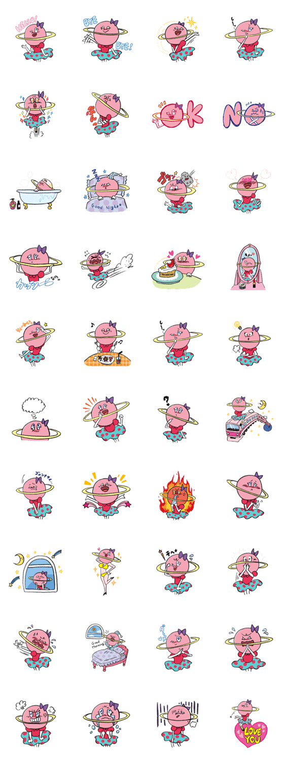 惑星系女子☆カシ美ちゃん tkmt コメントをどうぞ 桃色フェイスを覆うリングと、キラキラの瞳がチャームポイントの惑星の女の子・カシ美ちゃん。銀河系のどこかで、毎日元気にかわいく過ごす彼女の日常スタンプ。 このスタンプどう思う?!↓クリックで投票♪好き (0)かわいい (0)かっこいい (0)おもしろい (0)使いやすそう (0)欲しい (0)萌え (0)ほっこりする (0)おしゃれ (0)ゆるい (0)こわい (0)ウザい (0)キモい (0)ムカつく (0)持ってる (0)癒される (0)セクシー (0)個性的 (0)私は買わない (0)誰かプレゼントして! (0) 購入・プレゼントする Facebookでシェア Twitterでシェア