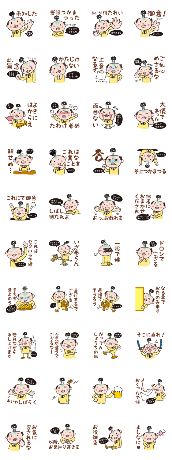 愉快な、ちょんまげパーマ君。ビジネス編 Fgraphics コメントをどうぞ 愉快な、ちょんまげパーマ君。『武士言葉』でビジネスシーンで使えるスタンプをお届け!仕事でお疲れの同僚・上司に、おもしろ癒しスタンプです。 このスタンプどう思う?!↓クリックで投票♪好き (0)かわいい (0)かっこいい (0)おもしろい (0)使いやすそう (0)欲しい (0)萌え (0)ほっこりする (0)おしゃれ (0)ゆるい (0)こわい (0)ウザい (0)キモい (0)ムカつく (0)持ってる (0)癒される (0)セクシー (0)個性的 (0)私は買わない (0)誰かプレゼントして! (0) 購入・プレゼントする Facebookでシェア Twitterでシェア