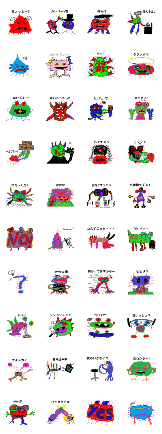 愛すべきモンスター達 Yin コメントをどうぞ 日々の何気ないシチュエーションにモンスター達が彩りをくれるよ!! このスタンプどう思う?!↓クリックで投票♪好き (0)かわいい (0)かっこいい (0)おもしろい (0)使いやすそう (0)欲しい (0)萌え (0)ほっこりする (0)おしゃれ (0)ゆるい (0)こわい (0)ウザい (0)キモい (0)ムカつく (0)持ってる (0)癒される (0)セクシー (0)個性的 (0)私は買わない (0)誰かプレゼントして! (0) 購入・プレゼントする Facebookでシェア Twitterでシェア