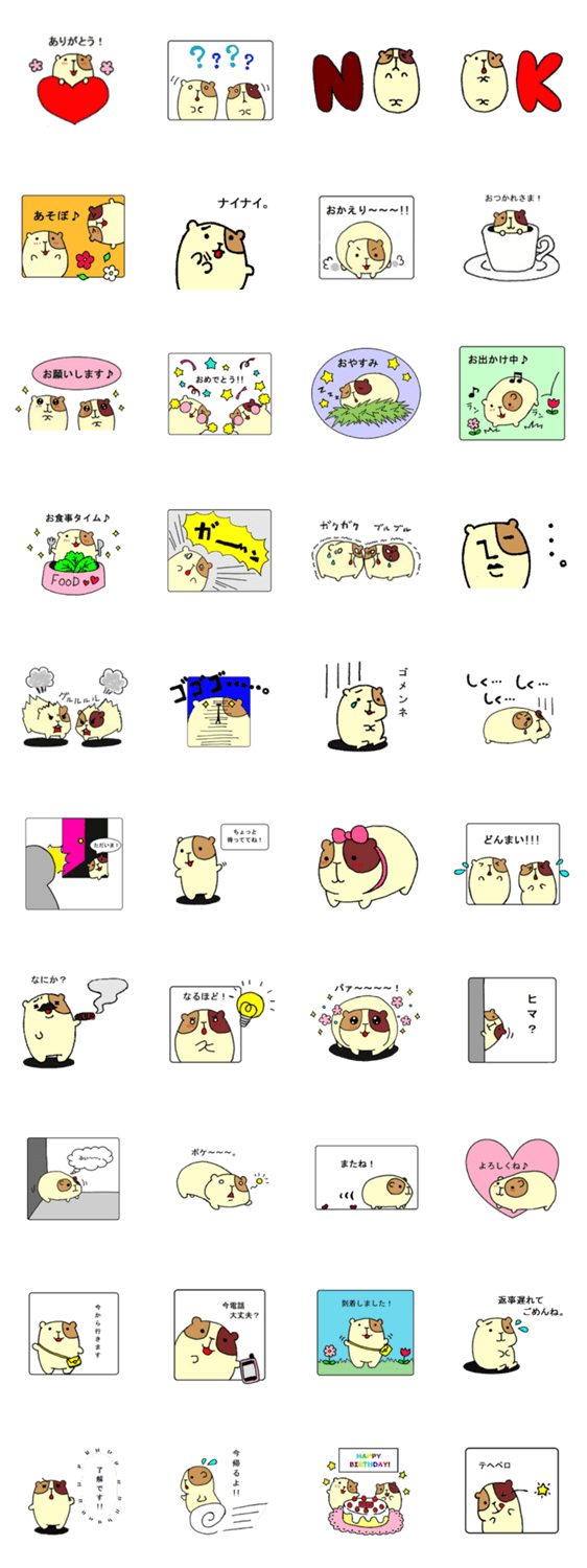 我が家のモルモット。 アニー コメントをどうぞ 大好きなモルモットをモデルにスタンプを作りました。 このスタンプどう思う?!↓クリックで投票♪好き (0)かわいい (0)かっこいい (0)おもしろい (0)使いやすそう (0)欲しい (0)萌え (0)ほっこりする (0)おしゃれ (0)ゆるい (0)こわい (0)ウザい (0)キモい (0)ムカつく (0)持ってる (0)癒される (0)セクシー (0)個性的 (0)私は買わない (0)誰かプレゼントして! (0) 購入・プレゼントする Facebookでシェア Twitterでシェア