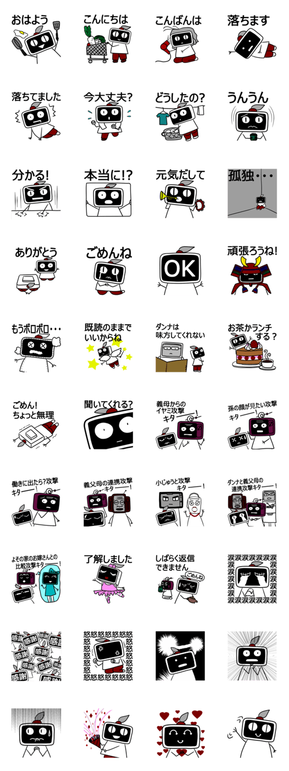 戦う嫁スタンプ coorina コメントをどうぞ このスタンプは、嫁ぎ先の義父母や夫から冷たい仕打ちを受けているお嫁さん用に作成してみました。お友達同士、愚痴を言う時に使っていただけたら嬉しいです。 このスタンプどう思う?!↓クリックで投票♪好き (0)かわいい (0)かっこいい (0)おもしろい (0)使いやすそう (0)欲しい (0)萌え (0)ほっこりする (0)おしゃれ (0)ゆるい (0)こわい (0)ウザい (0)キモい (0)ムカつく (0)持ってる (0)癒される (0)セクシー (0)個性的 (0)私は買わない (0)誰かプレゼントして! (0) 購入・プレゼントする Facebookでシェア Twitterでシェア