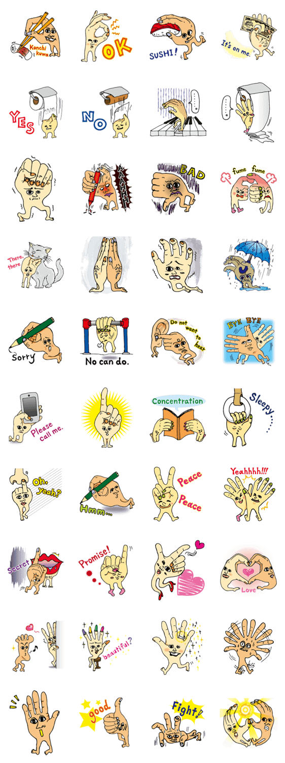 手から足、はえました(英語版) わやこ コメントをどうぞ 【英語版】手に足がはえたよ!これで自由を手にいれたね★ちょっとだけ気持ち悪いけどよく見るとかわいいでしょ?そんな手びとさんのキモカワスタンプ。日本語版もあるよ。 このスタンプどう思う?!↓クリックで投票♪好き (0)かわいい (0)かっこいい (0)おもしろい (0)使いやすそう (0)欲しい (0)萌え (0)ほっこりする (0)おしゃれ (0)ゆるい (0)こわい (0)ウザい (0)キモい (0)ムカつく (0)持ってる (0)癒される (0)セクシー (0)個性的 (0)私は買わない (0)誰かプレゼントして! (0) 購入・プレゼントする Facebookでシェア Twitterでシェア