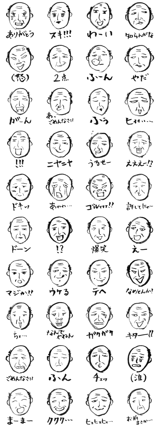 手描きのオッサン「よしお」 おがたな コメントをどうぞ 喜怒哀楽の激しいおじさん「よしお」のスタンプ。ゆるキャラ的な?なんとも言えない微妙な表情と、40種類の手書きの「ひとこと」付きが魅力!! このスタンプどう思う?!↓クリックで投票♪好き (0)かわいい (0)かっこいい (0)おもしろい (0)使いやすそう (0)欲しい (0)萌え (0)ほっこりする (0)おしゃれ (0)ゆるい (0)こわい (0)ウザい (0)キモい (0)ムカつく (0)持ってる (0)癒される (0)セクシー (0)個性的 (0)私は買わない (0)誰かプレゼントして! (0) 購入・プレゼントする Facebookでシェア Twitterでシェア