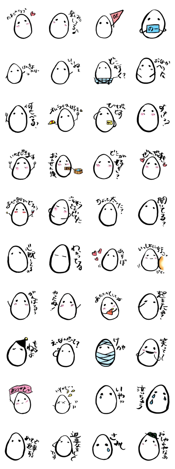 手描きタマゴちゃん TK コメントをどうぞ タマゴが好きすぎて、タマゴのスタンプ作りました。ゆで卵も温泉卵もオムライスの卵も全部好き。癒し系の卵で、愛嬌たっぷりの返信ができるはず。 このスタンプどう思う?!↓クリックで投票♪好き (0)かわいい (0)かっこいい (0)おもしろい (0)使いやすそう (0)欲しい (0)萌え (0)ほっこりする (0)おしゃれ (0)ゆるい (0)こわい (0)ウザい (0)キモい (0)ムカつく (0)持ってる (0)癒される (0)セクシー (0)個性的 (0)私は買わない (0)誰かプレゼントして! (0) 購入・プレゼントする Facebookでシェア Twitterでシェア