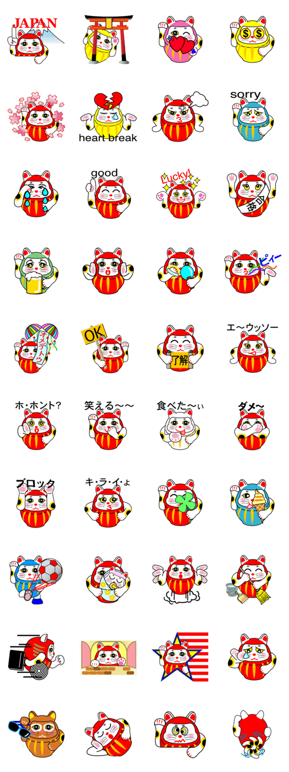 招き猫とダルマが合体した(モモちゃん)2 avante コメントをどうぞ 招き猫とダルマが合体して御利益倍増なった(招き猫ダルマモモちゃん)がスタンプになりました。願い事をしてメールしよう! このスタンプどう思う?!↓クリックで投票♪好き (0)かわいい (0)かっこいい (0)おもしろい (0)使いやすそう (0)欲しい (0)萌え (0)ほっこりする (0)おしゃれ (0)ゆるい (0)こわい (0)ウザい (0)キモい (0)ムカつく (0)持ってる (0)癒される (0)セクシー (0)個性的 (0)私は買わない (0)誰かプレゼントして! (0) 購入・プレゼントする Facebookでシェア Twitterでシェア