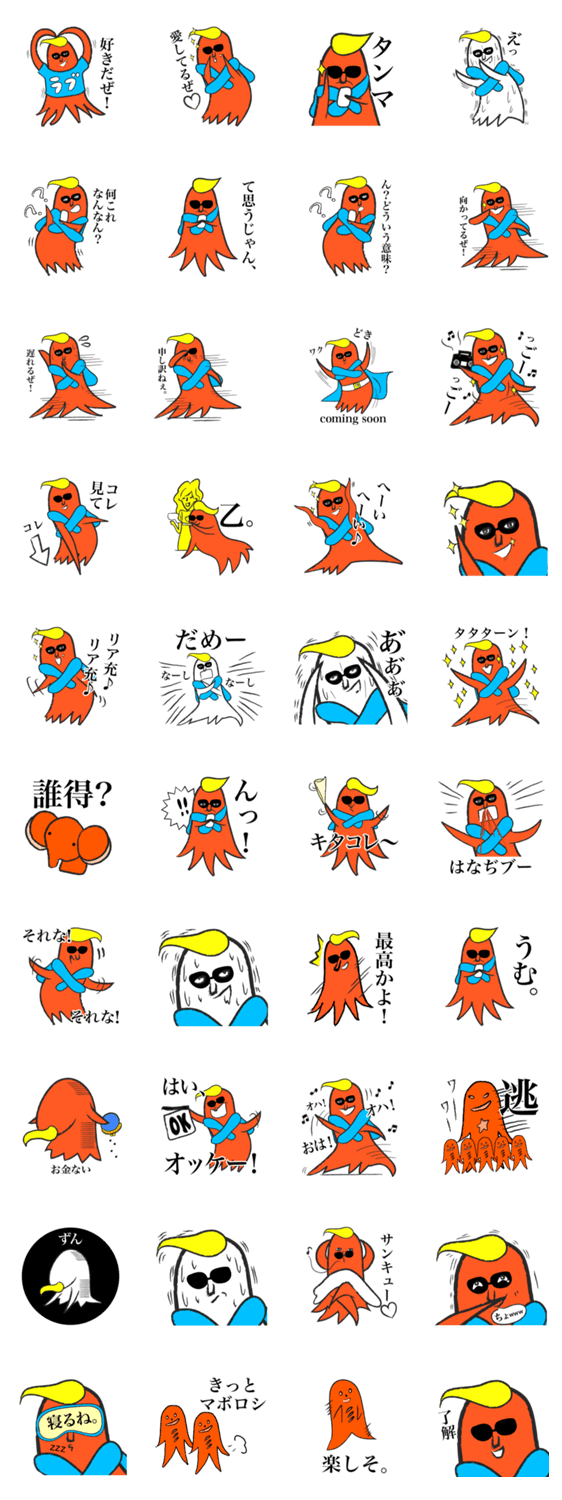 敏腕!?プロデューサー タコダさ~ん パンピキッズ コメントをどうぞ 敏腕プロデューサー、タコダ・タコニーニョのウザかわスタンプです。 このスタンプどう思う?!↓クリックで投票♪好き (0)かわいい (0)かっこいい (0)おもしろい (0)使いやすそう (0)欲しい (0)萌え (0)ほっこりする (0)おしゃれ (0)ゆるい (0)こわい (0)ウザい (0)キモい (0)ムカつく (0)持ってる (0)癒される (0)セクシー (0)個性的 (0)私は買わない (0)誰かプレゼントして! (0) 購入・プレゼントする Facebookでシェア Twitterでシェア
