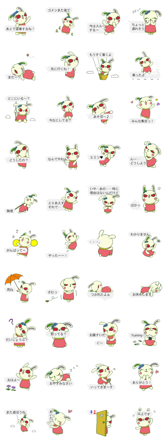 文字打ちなしでいいよね!赤目うさぎ編 ルル コメントをどうぞ 既読したけど文字を打つ時間がない。文字を打つのが面倒臭い!そんな葛藤を解消する便利なスタンプです。ふきだし付の可愛いうさぎが返信をスピーディに手助けします。 このスタンプどう思う?!↓クリックで投票♪好き (0)かわいい (0)かっこいい (0)おもしろい (0)使いやすそう (0)欲しい (0)萌え (0)ほっこりする (0)おしゃれ (0)ゆるい (0)こわい (0)ウザい (0)キモい (0)ムカつく (0)持ってる (0)癒される (0)セクシー (0)個性的 (0)私は買わない (0)誰かプレゼントして! (0) 購入・プレゼントする Facebookでシェア Twitterでシェア