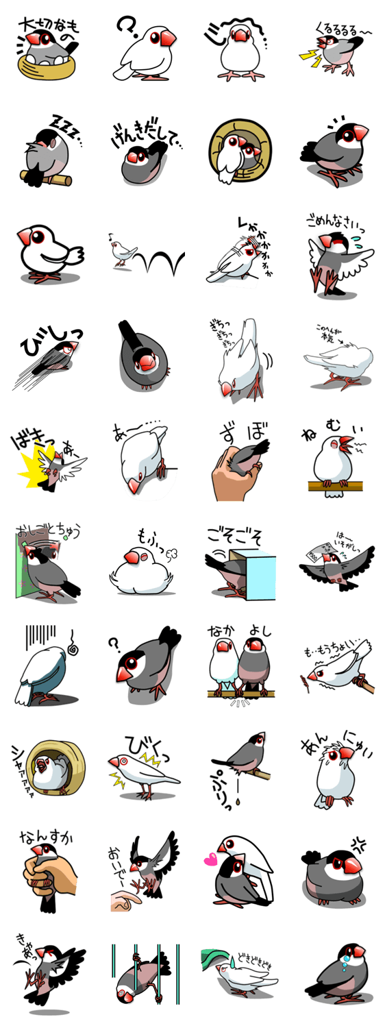 文鳥スタンプ 白&桜 神子秋沙 コメントをどうぞ 文鳥飼ってる人にはわかる文鳥たちの仕草。文鳥を愛してやまない作者が文鳥たちがLINEの上でアレコレしてくれたら嬉しいと思って作りました。白文鳥&桜文鳥です。 このスタンプどう思う?!↓クリックで投票♪好き (1)かわいい (0)かっこいい (0)おもしろい (0)使いやすそう (0)欲しい (0)萌え (0)ほっこりする (1)おしゃれ (0)ゆるい (0)こわい (0)ウザい (0)キモい (0)ムカつく (0)持ってる (0)癒される (0)セクシー (0)個性的 (0)私は買わない (0)誰かプレゼントして! (0) 購入・プレゼントする Facebookでシェア Twitterでシェア