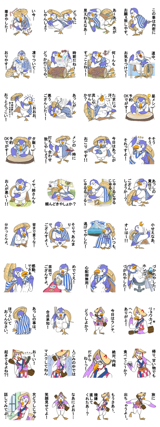 旅ガラスじゃないぜ、アホウドリだぜ! Hiroki Shimizu コメントをどうぞ アホウドリのおれっちとガールフレンドの姉さん、その他の会社の同僚や友達たちとの物語だぜ。 このスタンプどう思う?!↓クリックで投票♪好き (0)かわいい (0)かっこいい (0)おもしろい (0)使いやすそう (0)欲しい (0)萌え (0)ほっこりする (0)おしゃれ (0)ゆるい (0)こわい (0)ウザい (0)キモい (0)ムカつく (0)持ってる (0)癒される (0)セクシー (0)個性的 (0)私は買わない (0)誰かプレゼントして! (0) 購入・プレゼントする Facebookでシェア Twitterでシェア