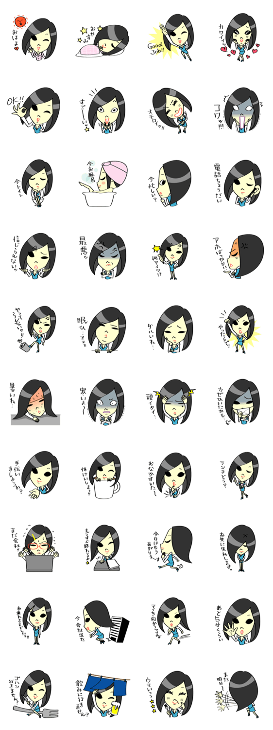 日々OL。 とみ かあい コメントをどうぞ 黒髪とデカ目がチャームポイントのOLチャン。泣いたり怒ったり笑ったり‥今日も元気イッパイ働きます! このスタンプどう思う?!↓クリックで投票♪好き (0)かわいい (0)かっこいい (0)おもしろい (0)使いやすそう (0)欲しい (0)萌え (0)ほっこりする (0)おしゃれ (0)ゆるい (0)こわい (0)ウザい (0)キモい (0)ムカつく (0)持ってる (0)癒される (0)セクシー (0)個性的 (0)私は買わない (0)誰かプレゼントして! (0) 購入・プレゼントする Facebookでシェア Twitterでシェア