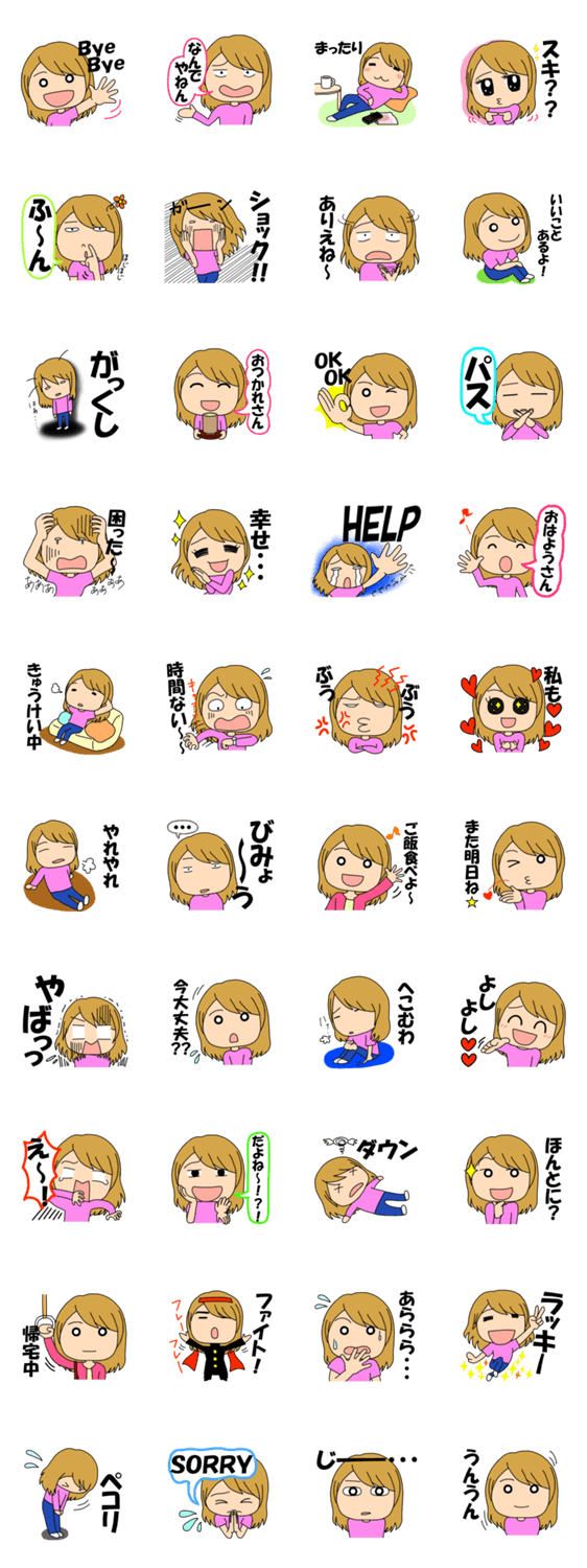 日常女子 ヒサ・コージン コメントをどうぞ 普通の女子の、普通の日常スタンプです。笑って怒って泣いて、毎日使ってね。 このスタンプどう思う?!↓クリックで投票♪好き (0)かわいい (0)かっこいい (0)おもしろい (0)使いやすそう (0)欲しい (0)萌え (0)ほっこりする (0)おしゃれ (0)ゆるい (0)こわい (0)ウザい (0)キモい (0)ムカつく (0)持ってる (0)癒される (0)セクシー (0)個性的 (0)私は買わない (0)誰かプレゼントして! (0) 購入・プレゼントする Facebookでシェア Twitterでシェア