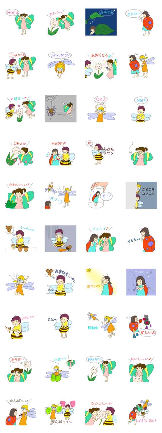 昆虫4姉妹 雨炎 コメントをどうぞ 4姉妹を昆虫イメージでキャラクター展開しました。ポップで可愛い絵柄と色合いとなっています。 このスタンプどう思う?!↓クリックで投票♪好き (0)かわいい (0)かっこいい (0)おもしろい (0)使いやすそう (0)欲しい (0)萌え (0)ほっこりする (0)おしゃれ (0)ゆるい (0)こわい (0)ウザい (0)キモい (0)ムカつく (0)持ってる (0)癒される (0)セクシー (0)個性的 (0)私は買わない (0)誰かプレゼントして! (0) 購入・プレゼントする Facebookでシェア Twitterでシェア