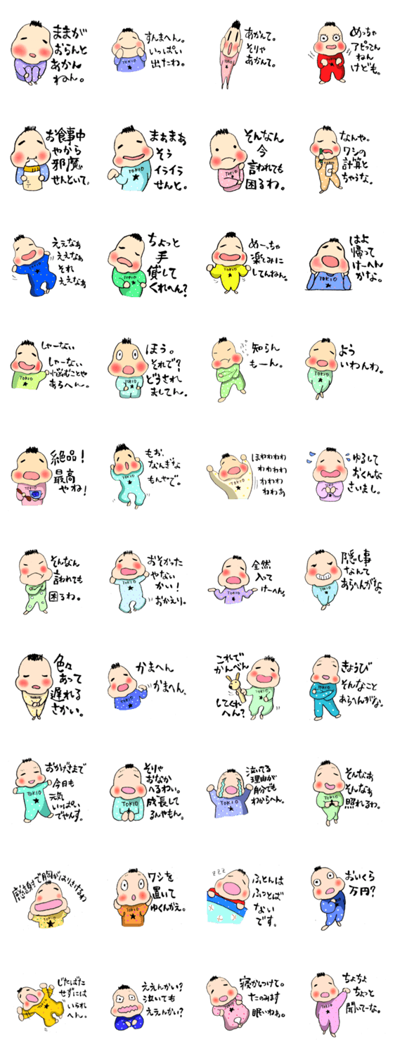 時夫べいびー(5ヶ月バージョン) SHOKO643 コメントをどうぞ 時夫べいびー(5ヶ月バージョン)。大阪弁でうったえかけてくる赤ん坊です。 このスタンプどう思う?!↓クリックで投票♪好き (0)かわいい (0)かっこいい (0)おもしろい (0)使いやすそう (0)欲しい (0)萌え (0)ほっこりする (0)おしゃれ (0)ゆるい (0)こわい (0)ウザい (0)キモい (0)ムカつく (0)持ってる (0)癒される (0)セクシー (0)個性的 (0)私は買わない (0)誰かプレゼントして! (0) 購入・プレゼントする Facebookでシェア Twitterでシェア