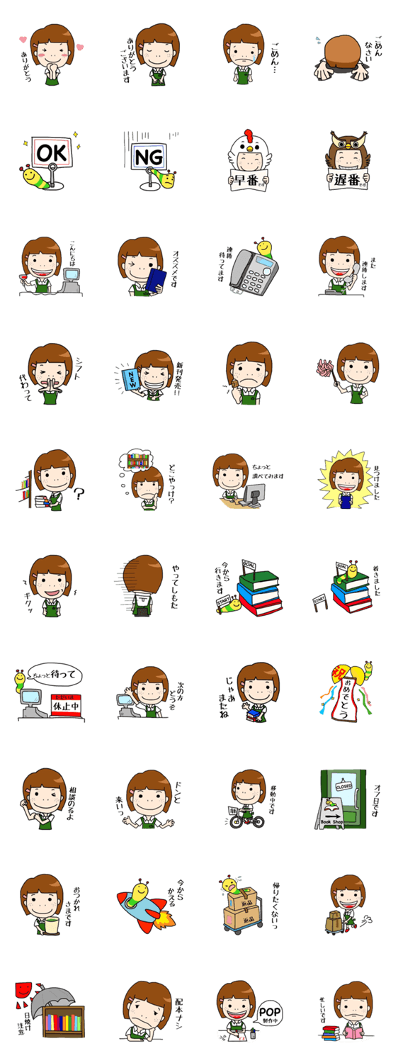 書店員の未来ちゃん Shohei コメントをどうぞ 未来ちゃんが書店員のバイトを始めました。これは彼女が働く本屋さんのスタンプです。彼女の相棒の本の虫がとってもかわいい。 このスタンプどう思う?!↓クリックで投票♪好き (0)かわいい (0)かっこいい (0)おもしろい (0)使いやすそう (0)欲しい (0)萌え (0)ほっこりする (0)おしゃれ (0)ゆるい (0)こわい (0)ウザい (0)キモい (0)ムカつく (0)持ってる (0)癒される (0)セクシー (0)個性的 (0)私は買わない (0)誰かプレゼントして! (0) 購入・プレゼントする Facebookでシェア Twitterでシェア