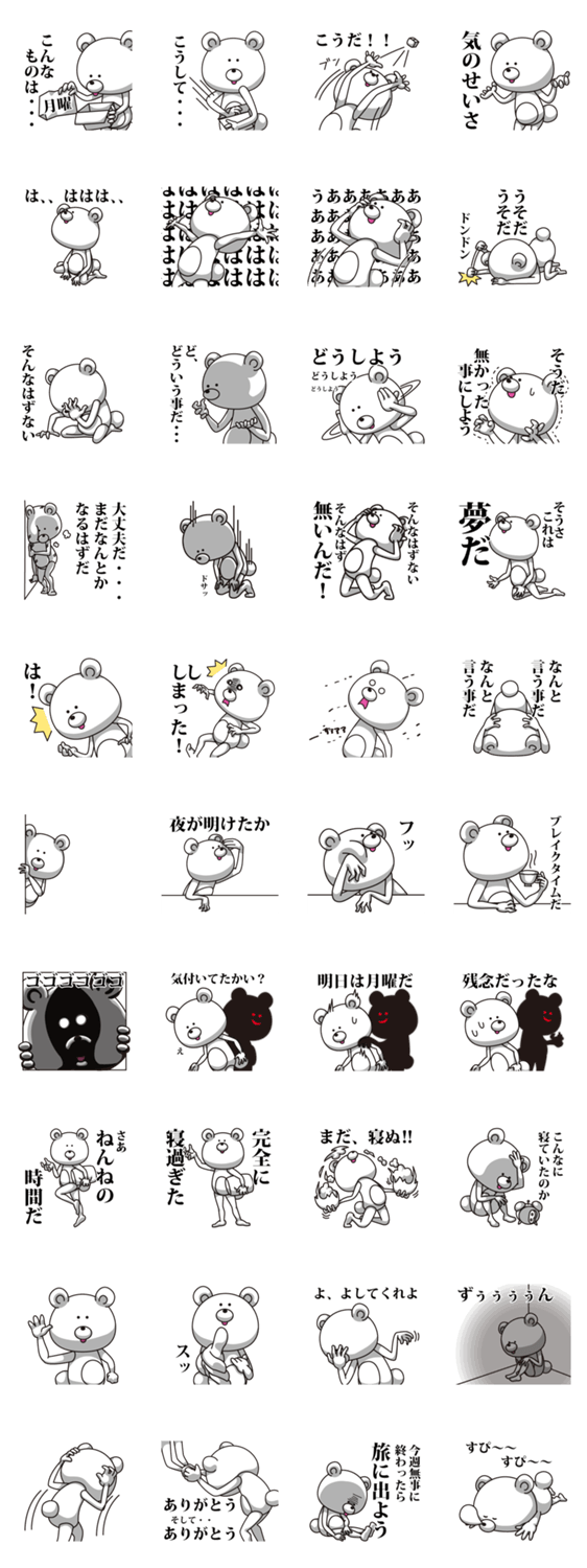 月曜にほんろうされるクマ NEGI コメントをどうぞ NEGInoheyaから第23弾リリース!あぁ、休みが終わる。。明日から学校だ。。仕事だ。。あぁ、月曜日だ。。そんな事を思ってしまう週末に。 このスタンプどう思う?!↓クリックで投票♪好き (0)かわいい (0)かっこいい (0)おもしろい (0)使いやすそう (0)欲しい (0)萌え (0)ほっこりする (0)おしゃれ (0)ゆるい (0)こわい (0)ウザい (0)キモい (0)ムカつく (0)持ってる (0)癒される (0)セクシー (0)個性的 (0)私は買わない (0)誰かプレゼントして! (0) 購入・プレゼントする Facebookでシェア Twitterでシェア