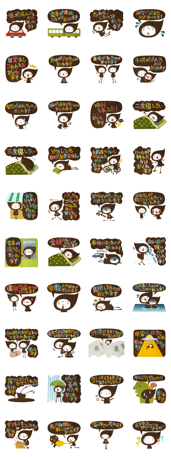 木の葉の妖精このっぺちゃん 遅刻言い訳編 しらかべりえ コメントをどうぞ このっぺちゃんは、小さくてイタズラ好きでオチャメな木の葉の妖精です。遅刻の言い訳がしたい時(笑)お役立て下さい。 このスタンプどう思う?!↓クリックで投票♪好き (0)かわいい (0)かっこいい (0)おもしろい (0)使いやすそう (0)欲しい (0)萌え (0)ほっこりする (0)おしゃれ (0)ゆるい (0)こわい (0)ウザい (0)キモい (0)ムカつく (0)持ってる (0)癒される (0)セクシー (0)個性的 (0)私は買わない (0)誰かプレゼントして! (0) 購入・プレゼントする Facebookでシェア Twitterでシェア