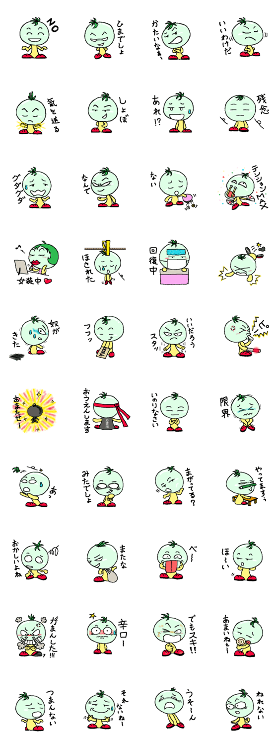 未成熟トマトくん けろけろ コメントをどうぞ 赤くなれなかったトマトくん。未成熟なだけに、大人げない一面も…よかったら使って下さい。 このスタンプどう思う?!↓クリックで投票♪好き (0)かわいい (0)かっこいい (0)おもしろい (0)使いやすそう (0)欲しい (0)萌え (0)ほっこりする (0)おしゃれ (0)ゆるい (0)こわい (0)ウザい (0)キモい (0)ムカつく (0)持ってる (0)癒される (0)セクシー (0)個性的 (0)私は買わない (0)誰かプレゼントして! (0) 購入・プレゼントする Facebookでシェア Twitterでシェア