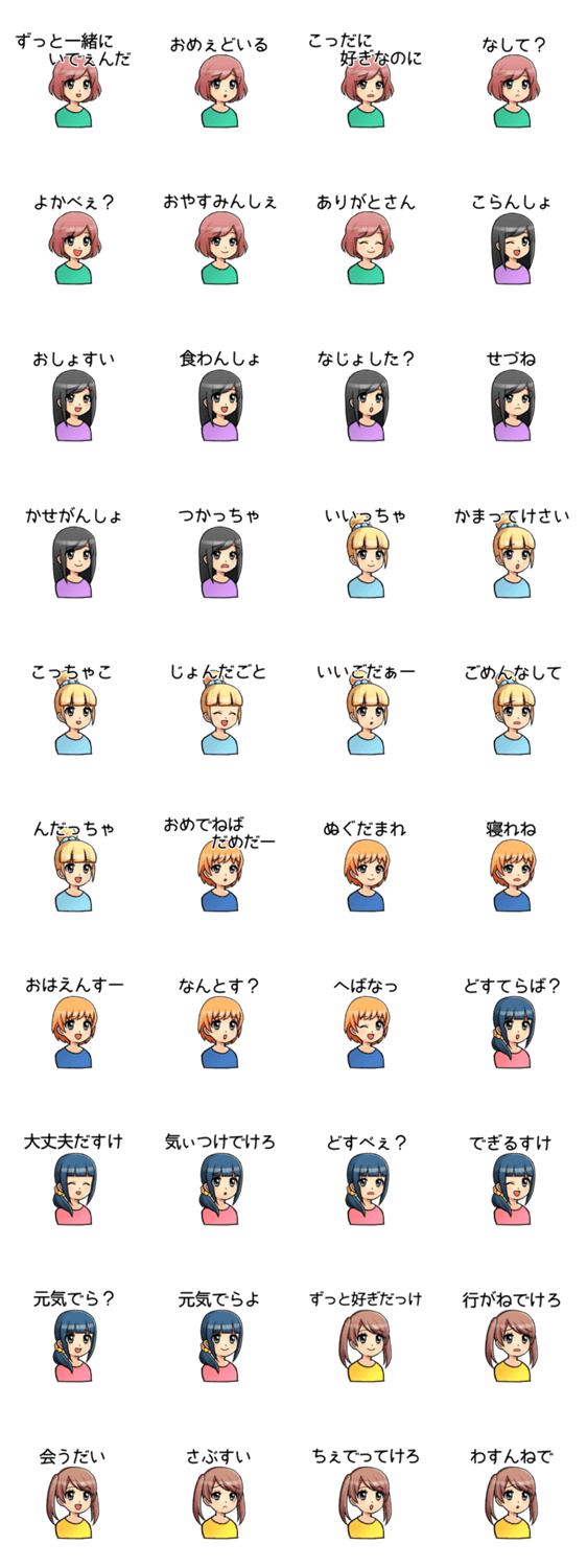 東北弁女子 りれ コメントをどうぞ 東北弁を話す東北各県の女子スタンプ。女の子が言ったらかわいい言葉を集めてみました。東北弁は心をほっこりさせてくれます。 このスタンプどう思う?!↓クリックで投票♪好き (0)かわいい (0)かっこいい (0)おもしろい (0)使いやすそう (0)欲しい (0)萌え (0)ほっこりする (0)おしゃれ (0)ゆるい (0)こわい (0)ウザい (0)キモい (0)ムカつく (0)持ってる (0)癒される (0)セクシー (0)個性的 (0)私は買わない (0)誰かプレゼントして! (0) 購入・プレゼントする Facebookでシェア Twitterでシェア