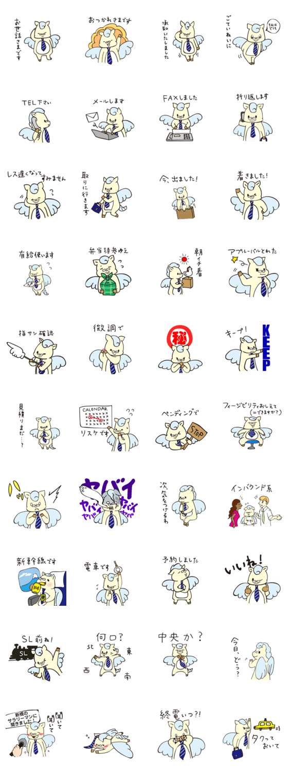 東新橋ペガサス課長④ビジネス編 岡村印刷工業株式会社 コメントをどうぞ 何この異次元緩和、総裁もびっくり、LINE市場がペガサスでじゃぶじゃぶになっちゃうよ。って感じで今回のテーマは、ビジネス。使ってよ、ビジネスメーン、ウーメーン。 このスタンプどう思う?!↓クリックで投票♪好き (0)かわいい (0)かっこいい (0)おもしろい (0)使いやすそう (0)欲しい (0)萌え (0)ほっこりする (0)おしゃれ (0)ゆるい (0)こわい (0)ウザい (0)キモい (0)ムカつく (0)持ってる (0)癒される (0)セクシー (0)個性的 (0)私は買わない (0)誰かプレゼントして! (0) 購入・プレゼントする Facebookでシェア Twitterでシェア