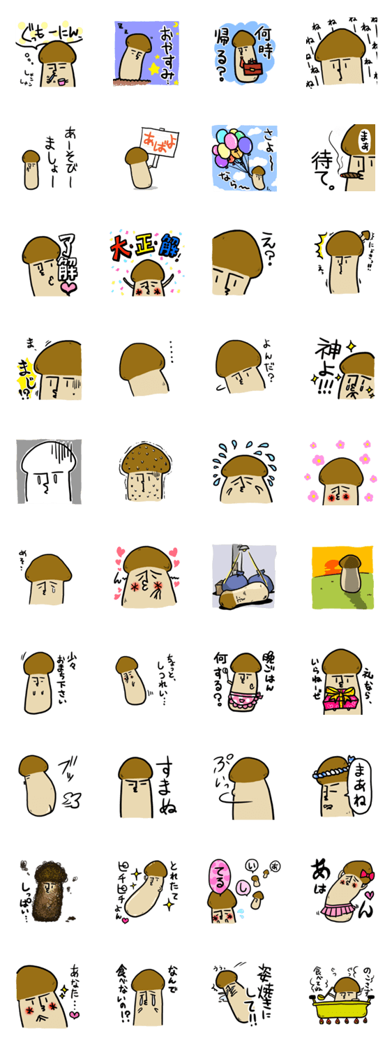 松さんといっしょ。 塩むすび コメントをどうぞ 巨大まつたけの松さんは、早く人に食べてもらうことが人生最大の夢。美味しく食べてもらうために、日々がんばって生きています。そんな松さんのスタンプが登場! このスタンプどう思う?!↓クリックで投票♪好き (0)かわいい (0)かっこいい (0)おもしろい (0)使いやすそう (0)欲しい (0)萌え (0)ほっこりする (0)おしゃれ (0)ゆるい (0)こわい (0)ウザい (0)キモい (0)ムカつく (0)持ってる (0)癒される (0)セクシー (0)個性的 (0)私は買わない (0)誰かプレゼントして! (0) 購入・プレゼントする Facebookでシェア Twitterでシェア