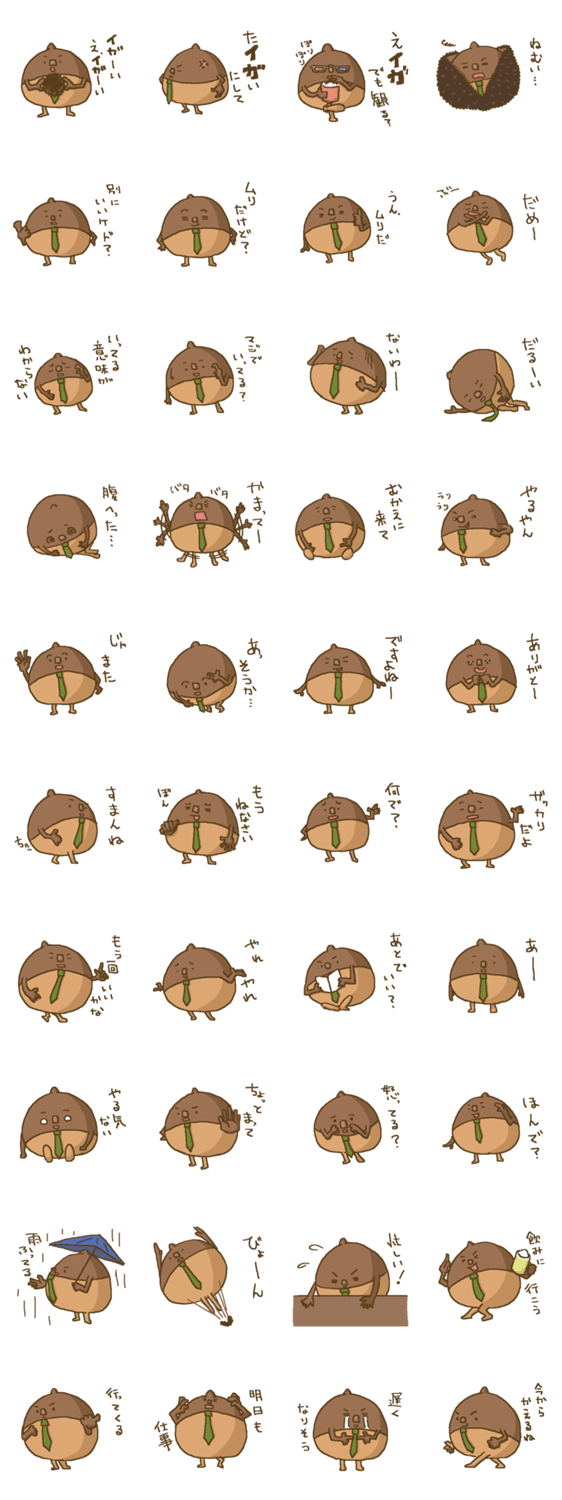 栗原さんver.2 深蔵 コメントをどうぞ 日常会話の中にさりげなく「くり」を入れてくるちょっとウザくも憎めない新米サラリーマン栗原さん。ver2は「イガ」まで入れてくるようになりました。 このスタンプどう思う?!↓クリックで投票♪好き (0)かわいい (0)かっこいい (0)おもしろい (0)使いやすそう (0)欲しい (0)萌え (0)ほっこりする (0)おしゃれ (0)ゆるい (0)こわい (0)ウザい (0)キモい (0)ムカつく (0)持ってる (0)癒される (0)セクシー (0)個性的 (0)私は買わない (0)誰かプレゼントして! (0) 購入・プレゼントする Facebookでシェア Twitterでシェア