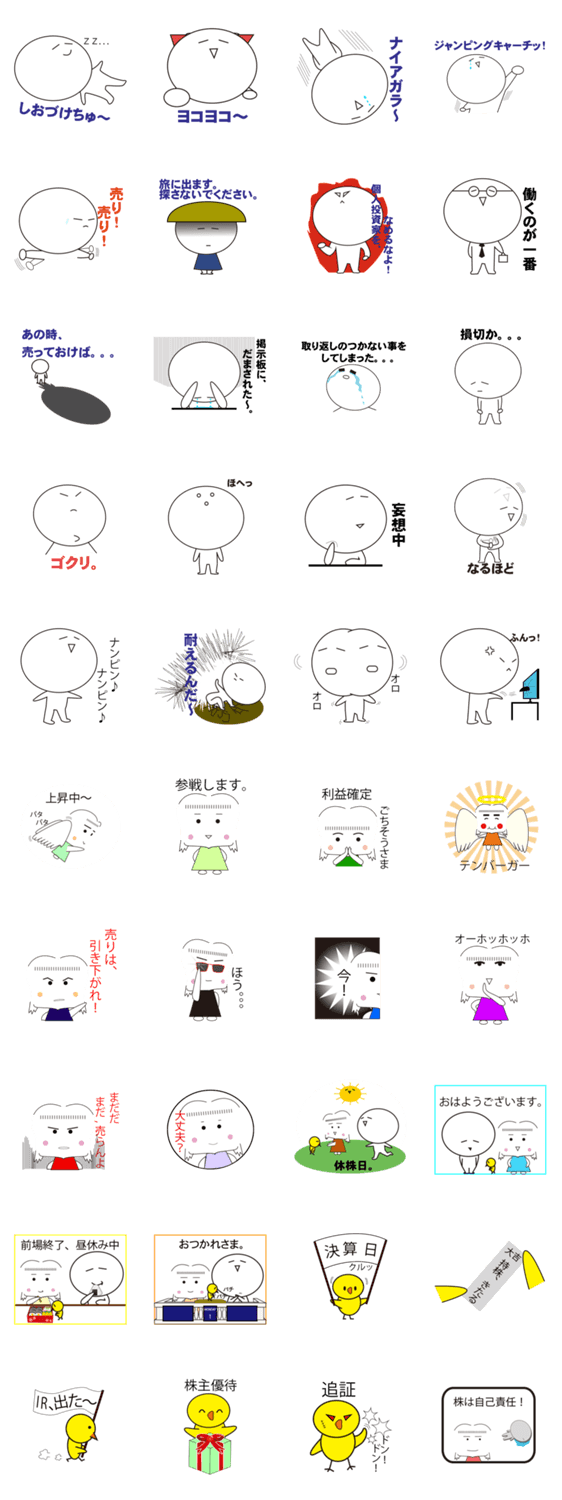 株吉株子 いのっく コメントをどうぞ 株吉君と株子さん、そしてペットの鳥?が繰り広げる株ライフ。 このスタンプどう思う?!↓クリックで投票♪好き (0)かわいい (0)かっこいい (0)おもしろい (0)使いやすそう (0)欲しい (0)萌え (0)ほっこりする (0)おしゃれ (0)ゆるい (0)こわい (0)ウザい (0)キモい (0)ムカつく (0)持ってる (0)癒される (0)セクシー (0)個性的 (0)私は買わない (0)誰かプレゼントして! (0) 購入・プレゼントする Facebookでシェア Twitterでシェア