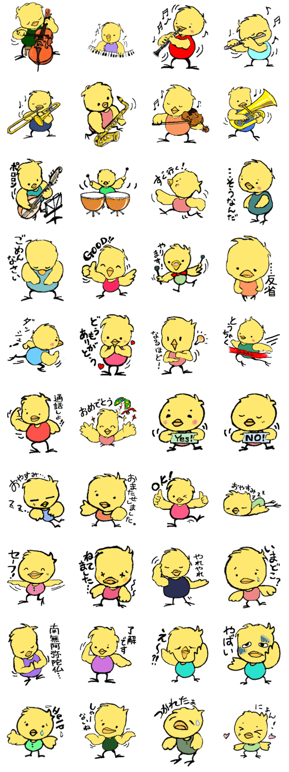 楽器ピヨタン ikemin コメントをどうぞ ピアノ、チェロ、フルート、クラリネット、サックス、トロンボーン、チューバ、ティンパニー、マンドリン担当の仲間たちとオーケストラやジャズに挑戦中のぴよたんです。 このスタンプどう思う?!↓クリックで投票♪好き (0)かわいい (0)かっこいい (0)おもしろい (0)使いやすそう (0)欲しい (0)萌え (0)ほっこりする (0)おしゃれ (0)ゆるい (0)こわい (0)ウザい (0)キモい (0)ムカつく (0)持ってる (0)癒される (0)セクシー (0)個性的 (0)私は買わない (0)誰かプレゼントして! (0) 購入・プレゼントする Facebookでシェア Twitterでシェア