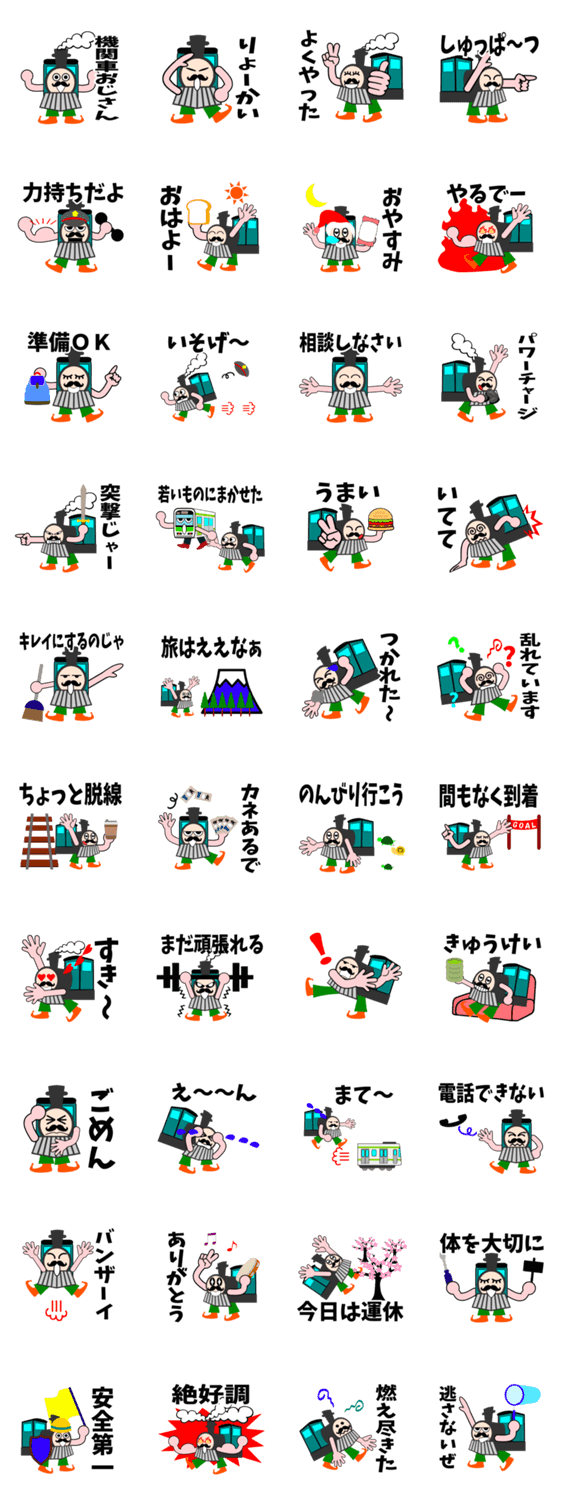 機関車おじさん KEDAMONO コメントをどうぞ 機関車です。SLとも呼ばれますが、力強い鉄道です。電車とは違いますがまだまだ元気に人を運びます。鉄ちゃんに愛されたいと思っています。蒸気機関車、貨物列車をよろしく このスタンプどう思う?!↓クリックで投票♪好き (0)かわいい (0)かっこいい (0)おもしろい (0)使いやすそう (0)欲しい (0)萌え (0)ほっこりする (0)おしゃれ (0)ゆるい (0)こわい (0)ウザい (0)キモい (0)ムカつく (0)持ってる (0)癒される (0)セクシー (0)個性的 (0)私は買わない (0)誰かプレゼントして! (0) 購入・プレゼントする Facebookでシェア Twitterでシェア