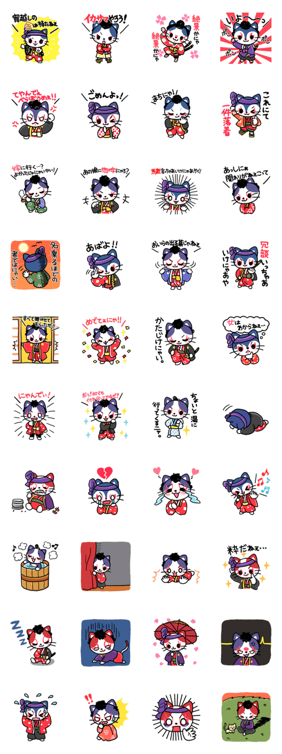 歌舞伎にゃんこ FIFTYFOUR CREATIVE INC コメントをどうぞ 粋なネコ歌舞伎役者が繰り広げる江戸っ子スタンプが登場!歌舞伎キャラになりきって小粋なセリフをLINEトークで使ってみよう♪ このスタンプどう思う?!↓クリックで投票♪好き (0)かわいい (0)かっこいい (0)おもしろい (0)使いやすそう (0)欲しい (0)萌え (0)ほっこりする (0)おしゃれ (0)ゆるい (0)こわい (0)ウザい (0)キモい (0)ムカつく (0)持ってる (0)癒される (0)セクシー (0)個性的 (0)私は買わない (0)誰かプレゼントして! (0) 購入・プレゼントする Facebookでシェア Twitterでシェア