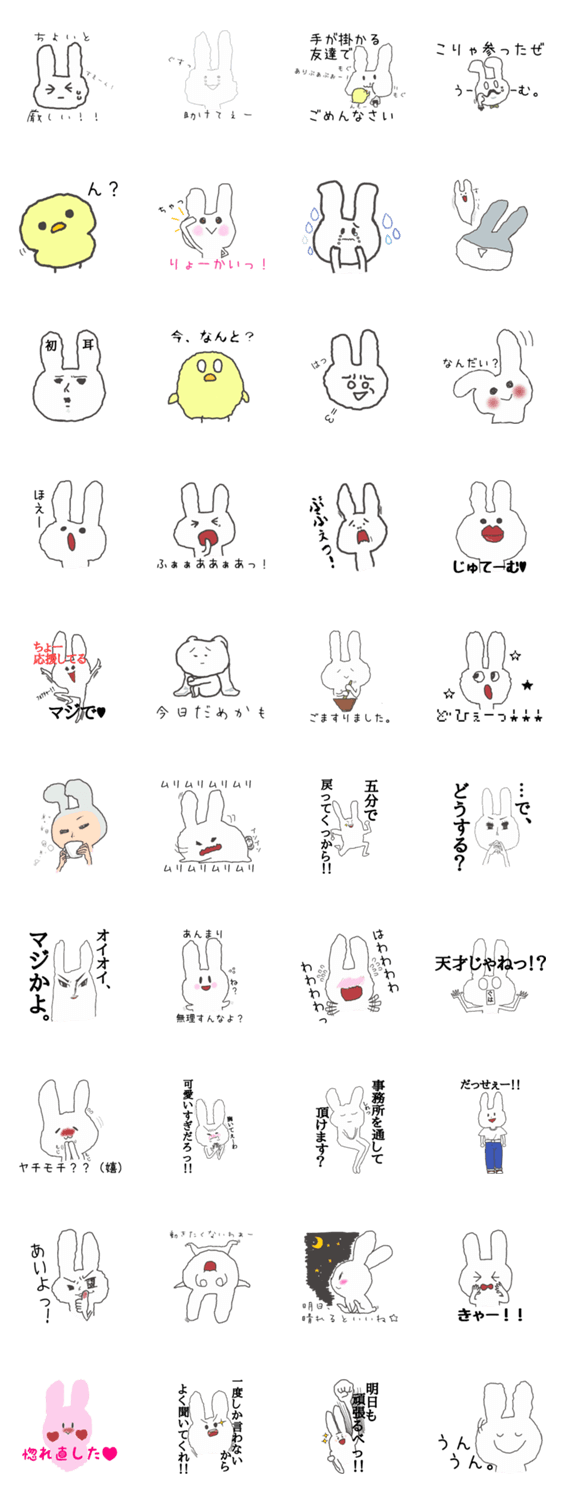正直うさぎ2 maiko. コメントをどうぞ ストレートに言葉を伝えられるうさぎです。バージョン2です。 このスタンプどう思う?!↓クリックで投票♪好き (0)かわいい (0)かっこいい (0)おもしろい (0)使いやすそう (0)欲しい (0)萌え (0)ほっこりする (0)おしゃれ (0)ゆるい (0)こわい (0)ウザい (0)キモい (0)ムカつく (0)持ってる (0)癒される (0)セクシー (0)個性的 (0)私は買わない (0)誰かプレゼントして! (0) 購入・プレゼントする Facebookでシェア Twitterでシェア