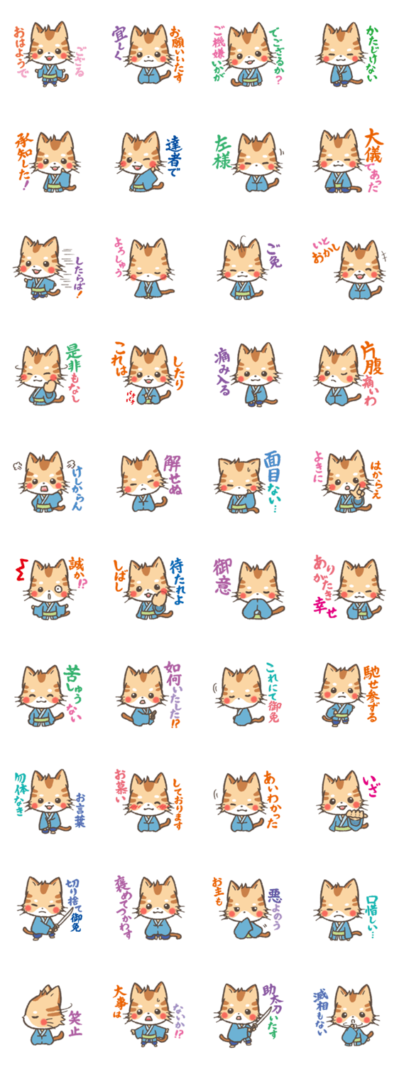 武士語で挨拶!ネコざむらい 未希 コメントをどうぞ 武士に扮したネコが武士語で挨拶!日常会話につい使ってみたくなるかも? このスタンプどう思う?!↓クリックで投票♪好き (0)かわいい (0)かっこいい (0)おもしろい (0)使いやすそう (0)欲しい (0)萌え (0)ほっこりする (0)おしゃれ (0)ゆるい (0)こわい (0)ウザい (0)キモい (0)ムカつく (0)持ってる (0)癒される (0)セクシー (0)個性的 (0)私は買わない (0)誰かプレゼントして! (0) 購入・プレゼントする Facebookでシェア Twitterでシェア