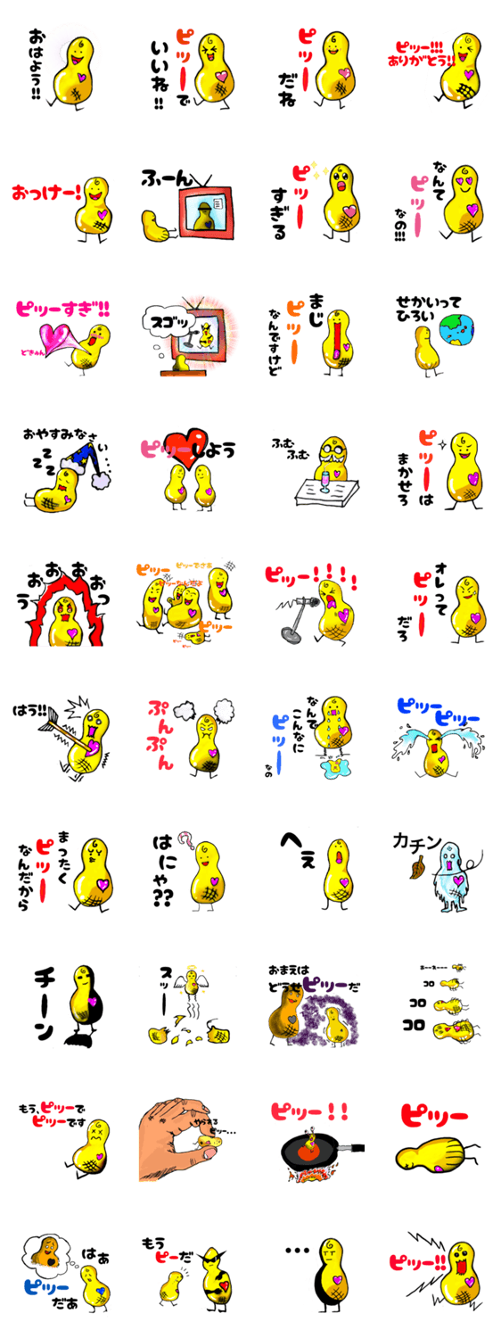 歩く、放送禁止用語ピッーちゃん ! ! ! GENUINELY コメントをどうぞ 千葉県産のピッーナッツのピッーちゃん。会話の大事な部分はいつもピッーと言ってしまう、将来は輝くカッコイイ大人のピッーナッツに憧れる少年ピーナッツ。 このスタンプどう思う?!↓クリックで投票♪好き (0)かわいい (0)かっこいい (0)おもしろい (0)使いやすそう (0)欲しい (0)萌え (0)ほっこりする (0)おしゃれ (0)ゆるい (0)こわい (0)ウザい (0)キモい (0)ムカつく (0)持ってる (0)癒される (0)セクシー (0)個性的 (0)私は買わない (0)誰かプレゼントして! (0) 購入・プレゼントする Facebookでシェア Twitterでシェア