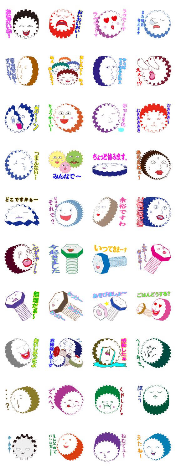 歯車さんとねじ巻きくん 柊 コメントをどうぞ 歯車とねじをモチーフにした奇妙なキャラクタースタンプです。ぜひ使ってみてください。 このスタンプどう思う?!↓クリックで投票♪好き (0)かわいい (0)かっこいい (0)おもしろい (0)使いやすそう (0)欲しい (0)萌え (0)ほっこりする (0)おしゃれ (0)ゆるい (0)こわい (0)ウザい (0)キモい (0)ムカつく (0)持ってる (0)癒される (0)セクシー (0)個性的 (0)私は買わない (0)誰かプレゼントして! (0) 購入・プレゼントする Facebookでシェア Twitterでシェア