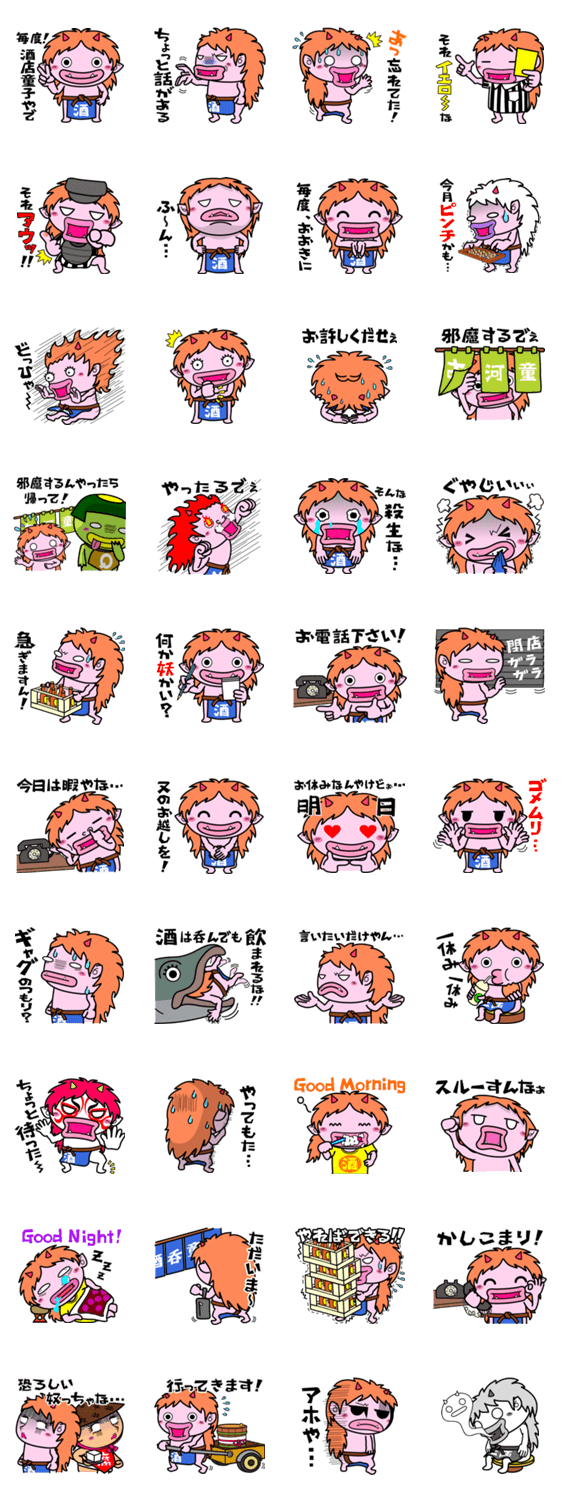 毎度!酒店童子です! はなぶさ はる コメントをどうぞ 平安の世に最強のもののけとして君臨した酒呑童子が陰陽師により討伐!しかし童子は駆逐されてはいなかった!?1200年の時を超え、酒屋に就職した酒店童子が大活躍! このスタンプどう思う?!↓クリックで投票♪好き (0)かわいい (0)かっこいい (0)おもしろい (0)使いやすそう (0)欲しい (0)萌え (0)ほっこりする (0)おしゃれ (0)ゆるい (0)こわい (0)ウザい (0)キモい (0)ムカつく (0)持ってる (0)癒される (0)セクシー (0)個性的 (0)私は買わない (0)誰かプレゼントして! (0) 購入・プレゼントする Facebookでシェア Twitterでシェア