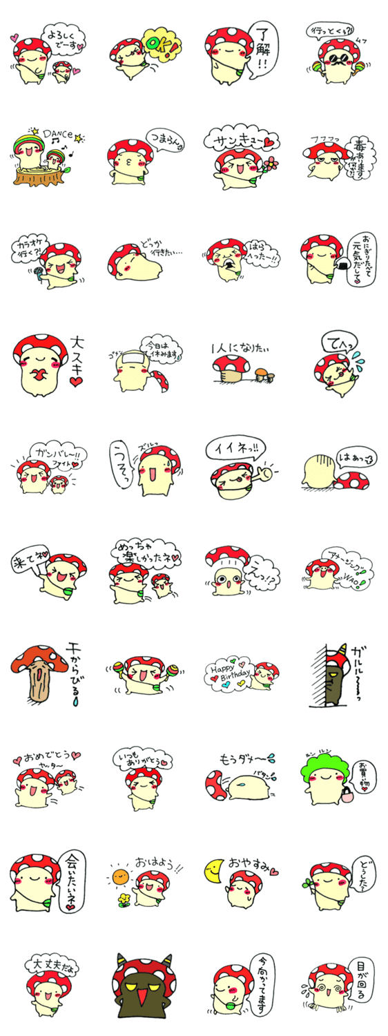 毒きのこちゃん Mikke コメントをどうぞ ベニテングダケのきのこちゃんの愉快な生活をスタンプにしました。 このスタンプどう思う?!↓クリックで投票♪好き (0)かわいい (0)かっこいい (0)おもしろい (0)使いやすそう (0)欲しい (0)萌え (0)ほっこりする (0)おしゃれ (0)ゆるい (0)こわい (0)ウザい (0)キモい (0)ムカつく (0)持ってる (0)癒される (0)セクシー (0)個性的 (0)私は買わない (0)誰かプレゼントして! (0) 購入・プレゼントする Facebookでシェア Twitterでシェア
