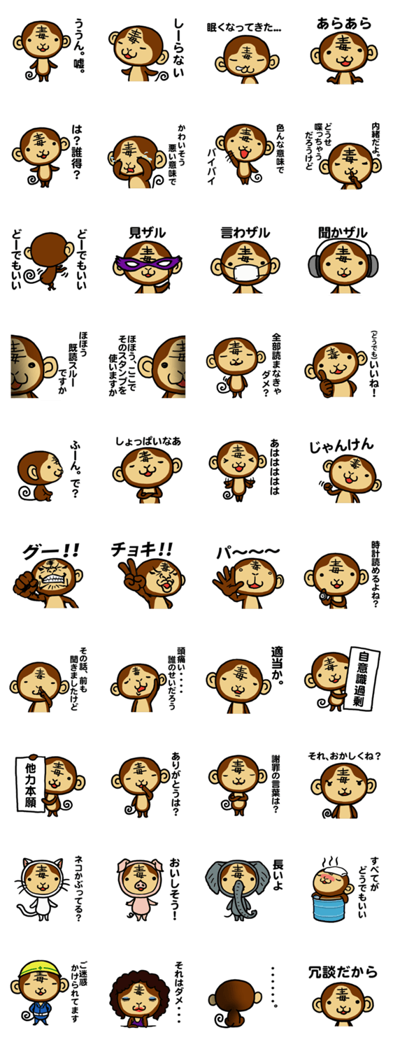 毒モンキー STUDIO-蔵 コメントをどうぞ ちょっと辛口な猿「毒モンキー」。相手の言葉にイラっとしたら使ってみましょう。自分がイラっとさせちゃった時は、40個目のスタンプを使ってね。 このスタンプどう思う?!↓クリックで投票♪好き (0)かわいい (0)かっこいい (0)おもしろい (0)使いやすそう (0)欲しい (0)萌え (0)ほっこりする (0)おしゃれ (0)ゆるい (0)こわい (0)ウザい (0)キモい (0)ムカつく (0)持ってる (0)癒される (0)セクシー (0)個性的 (0)私は買わない (0)誰かプレゼントして! (0) 購入・プレゼントする Facebookでシェア Twitterでシェア