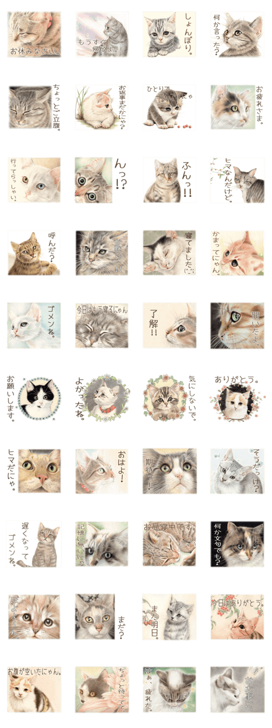 気まぐれニャンコたち seiko ogisho コメントをどうぞ リアルな絵をスタンプにしたら面白いかもと思い作ってみました。可愛くて、時々怖いニャンコたちです。 このスタンプどう思う?!↓クリックで投票♪好き (0)かわいい (0)かっこいい (0)おもしろい (0)使いやすそう (0)欲しい (0)萌え (0)ほっこりする (0)おしゃれ (0)ゆるい (0)こわい (0)ウザい (0)キモい (0)ムカつく (0)持ってる (0)癒される (0)セクシー (0)個性的 (0)私は買わない (0)誰かプレゼントして! (0) 購入・プレゼントする Facebookでシェア Twitterでシェア
