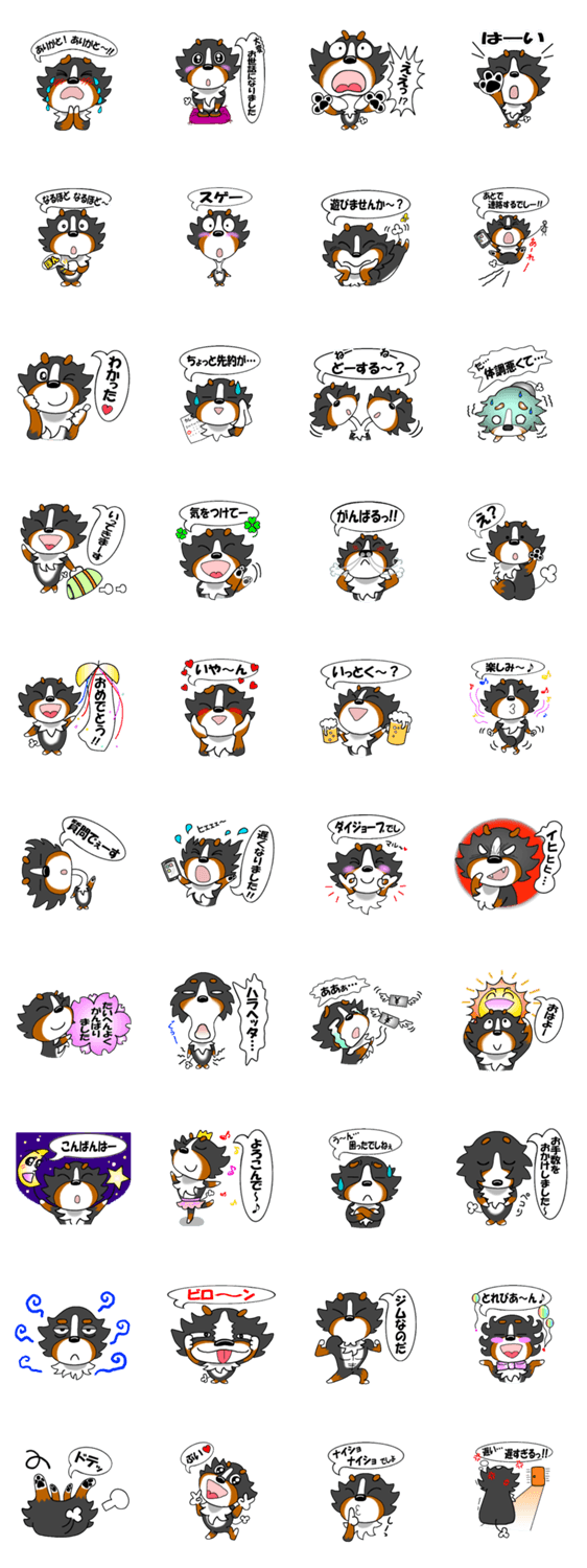 気分屋バーニーズ・その2 のりたまご コメントをどうぞ 気分屋バーニーズの第2弾です。相変わらず気分コロコロ、表情コロコロと大忙しの毎日であります。 このスタンプどう思う?!↓クリックで投票♪好き (0)かわいい (0)かっこいい (0)おもしろい (0)使いやすそう (0)欲しい (0)萌え (0)ほっこりする (0)おしゃれ (0)ゆるい (0)こわい (0)ウザい (0)キモい (0)ムカつく (0)持ってる (0)癒される (0)セクシー (0)個性的 (0)私は買わない (0)誰かプレゼントして! (0) 購入・プレゼントする Facebookでシェア Twitterでシェア