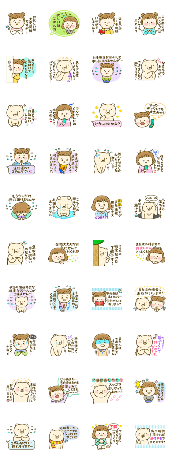 気遣いを忘れないクマさん&女の子 one_reason コメントをどうぞ 気遣いを忘れないシリーズ第1弾です!出来るだけ誠実に、出来るだけ柔らかく、時にはカジュアルに、相手に応えたい。そんな時にぜひ。謝る系多いです。 このスタンプどう思う?!↓クリックで投票♪好き (0)かわいい (0)かっこいい (0)おもしろい (0)使いやすそう (0)欲しい (0)萌え (0)ほっこりする (0)おしゃれ (0)ゆるい (0)こわい (0)ウザい (0)キモい (0)ムカつく (0)持ってる (0)癒される (0)セクシー (0)個性的 (0)私は買わない (0)誰かプレゼントして! (0) 購入・プレゼントする Facebookでシェア Twitterでシェア