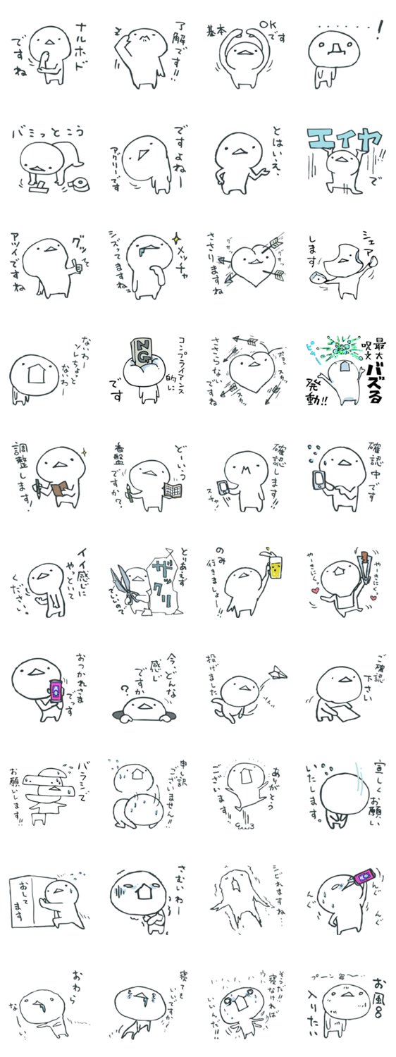 汎用人型業界適応生命体メタモるん まーく2 ウラケン コメントをどうぞ 広告,CM,TV,ラジオ,出版,映画,Web,CG,編集,マスコミ,あらゆる業界に適応し,デザイナー,クリエイター,ライター,放送作家,芸人,に寄生するメタモるん(改良版人型)のスタンプ このスタンプどう思う?!↓クリックで投票♪好き (0)かわいい (0)かっこいい (0)おもしろい (0)使いやすそう (0)欲しい (0)萌え (0)ほっこりする (0)おしゃれ (0)ゆるい (0)こわい (0)ウザい (0)キモい (0)ムカつく (0)持ってる (0)癒される (0)セクシー (0)個性的 (0)私は買わない (0)誰かプレゼントして! (0) 購入・プレゼントする Facebookでシェア Twitterでシェア
