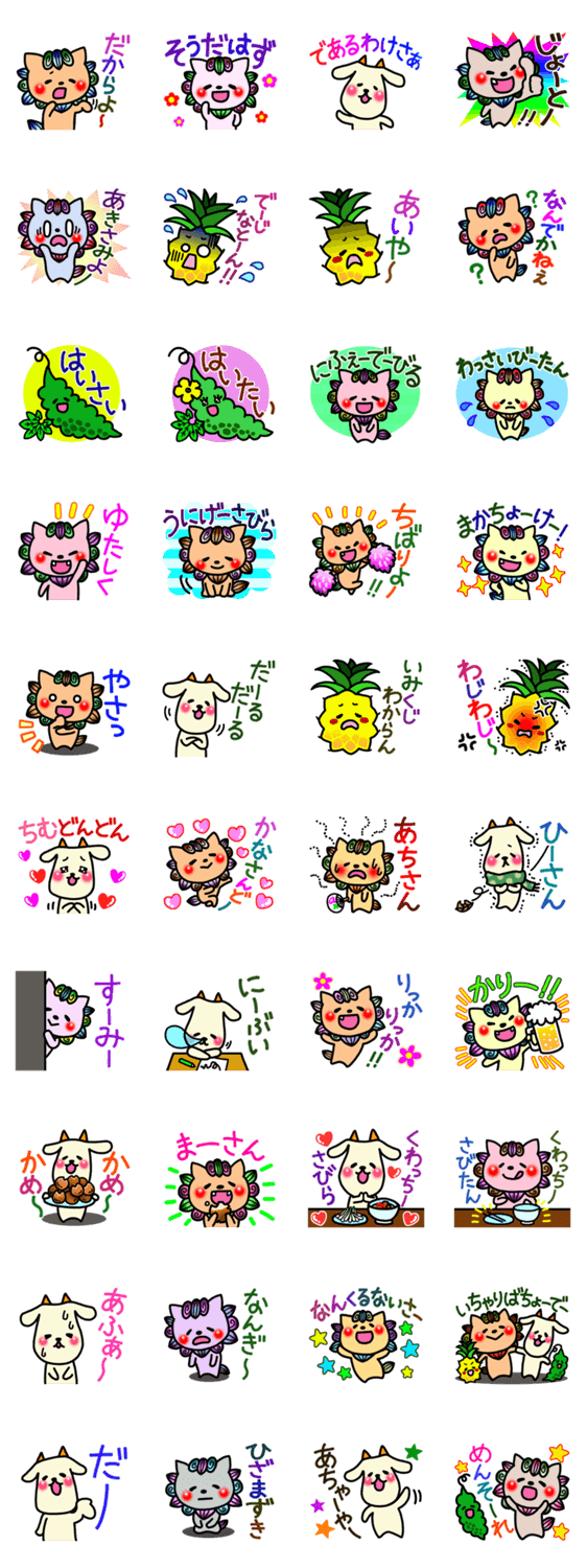 沖縄スタンプたのシーサー! もここ コメントをどうぞ シーサー、ヒージャー(やぎ)、ゴーヤー、パイナップルが沖縄の方言をお届けします。うちなーぐち、ウチナーヤマトグチのスタンプです。 このスタンプどう思う?!↓クリックで投票♪好き (0)かわいい (0)かっこいい (0)おもしろい (0)使いやすそう (0)欲しい (0)萌え (0)ほっこりする (0)おしゃれ (0)ゆるい (0)こわい (0)ウザい (0)キモい (0)ムカつく (0)持ってる (0)癒される (0)セクシー (0)個性的 (0)私は買わない (0)誰かプレゼントして! (0) 購入・プレゼントする Facebookでシェア Twitterでシェア