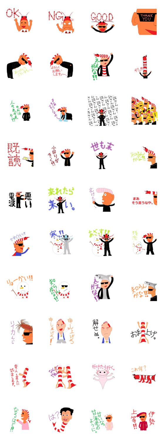 海老ヤンキーと仲間たち shrimp'98 コメントをどうぞ 海老リーゼントの持ち主と、その仲間たちがスタンプに!!!海老のマフラーを巻いた雪だるま、鮭ヤンキーなどの仲間たちもよろしくお願いします! このスタンプどう思う?!↓クリックで投票♪好き (0)かわいい (0)かっこいい (0)おもしろい (0)使いやすそう (0)欲しい (0)萌え (0)ほっこりする (0)おしゃれ (0)ゆるい (0)こわい (0)ウザい (0)キモい (0)ムカつく (0)持ってる (0)癒される (0)セクシー (0)個性的 (0)私は買わない (0)誰かプレゼントして! (0) 購入・プレゼントする Facebookでシェア Twitterでシェア