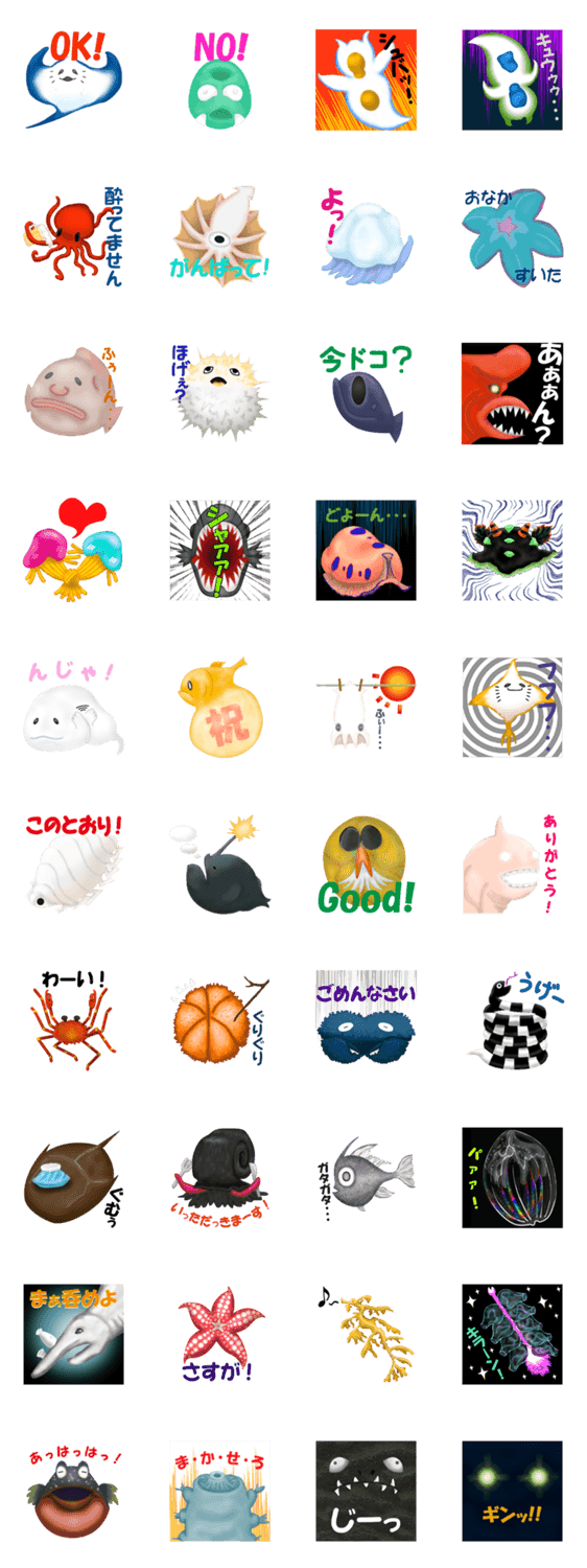 深海に潜む民たちスタンプ あまいくん コメントをどうぞ とある深海に潜む生き物たちの日常。 カラフルでちょっとおかしな人間味あふれるスタンプです。 このスタンプどう思う?!↓クリックで投票♪好き (0)かわいい (0)かっこいい (0)おもしろい (0)使いやすそう (0)欲しい (0)萌え (0)ほっこりする (0)おしゃれ (0)ゆるい (0)こわい (0)ウザい (0)キモい (0)ムカつく (0)持ってる (0)癒される (0)セクシー (0)個性的 (0)私は買わない (0)誰かプレゼントして! (0) 購入・プレゼントする Facebookでシェア Twitterでシェア