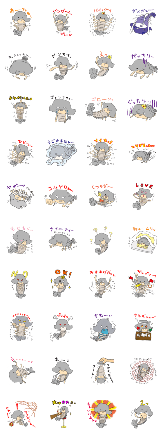 深海生物ダイオウグソクムシーズ chikasake コメントをどうぞ 深海生物ダイオウグソクムシをモチーフにしたキャラクターです。「殻の中身は人っぽい生物」という設定です。朝や光、熱に弱く、性格は「素朴な夜型人間」です。 このスタンプどう思う?!↓クリックで投票♪好き (0)かわいい (0)かっこいい (0)おもしろい (0)使いやすそう (0)欲しい (0)萌え (0)ほっこりする (0)おしゃれ (0)ゆるい (0)こわい (0)ウザい (0)キモい (0)ムカつく (0)持ってる (0)癒される (0)セクシー (0)個性的 (0)私は買わない (0)誰かプレゼントして! (0) 購入・プレゼントする Facebookでシェア Twitterでシェア