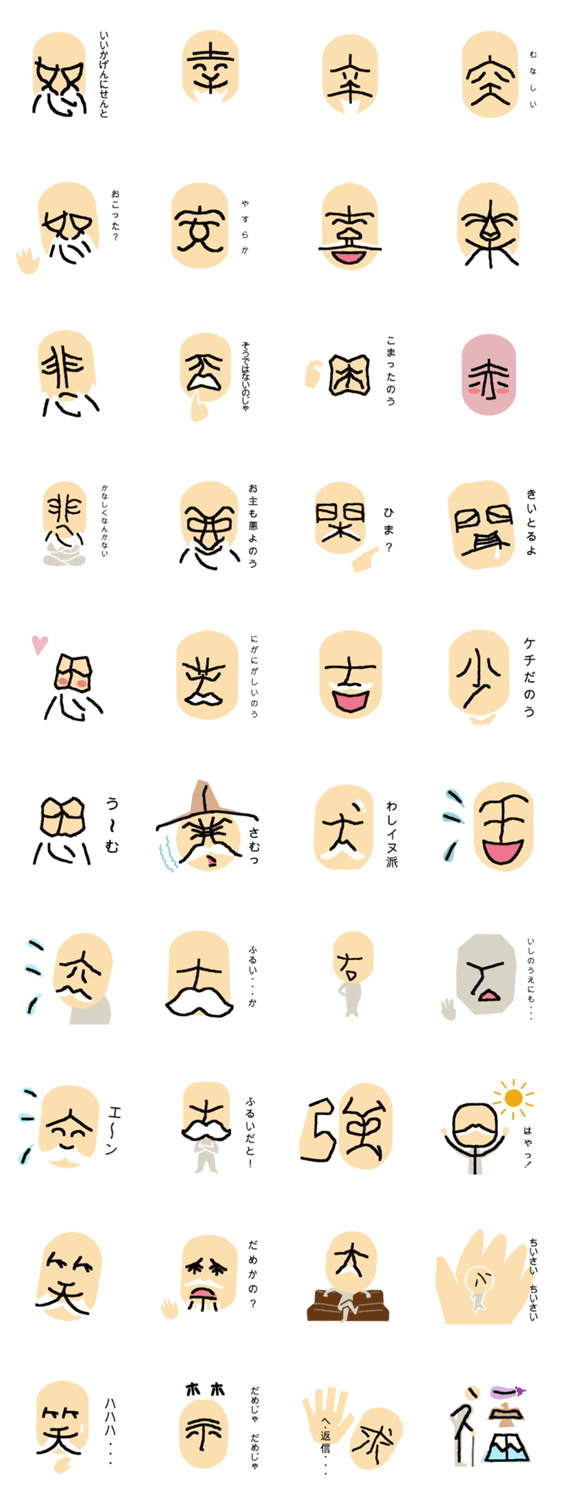 漢じい yajou コメントをどうぞ 顔が漢字になっているおじいさんが気持ちを伝えるスタンプです。 このスタンプどう思う?!↓クリックで投票♪好き (0)かわいい (0)かっこいい (0)おもしろい (0)使いやすそう (0)欲しい (0)萌え (0)ほっこりする (0)おしゃれ (0)ゆるい (0)こわい (0)ウザい (0)キモい (0)ムカつく (0)持ってる (0)癒される (0)セクシー (0)個性的 (0)私は買わない (0)誰かプレゼントして! (0) 購入・プレゼントする Facebookでシェア Twitterでシェア