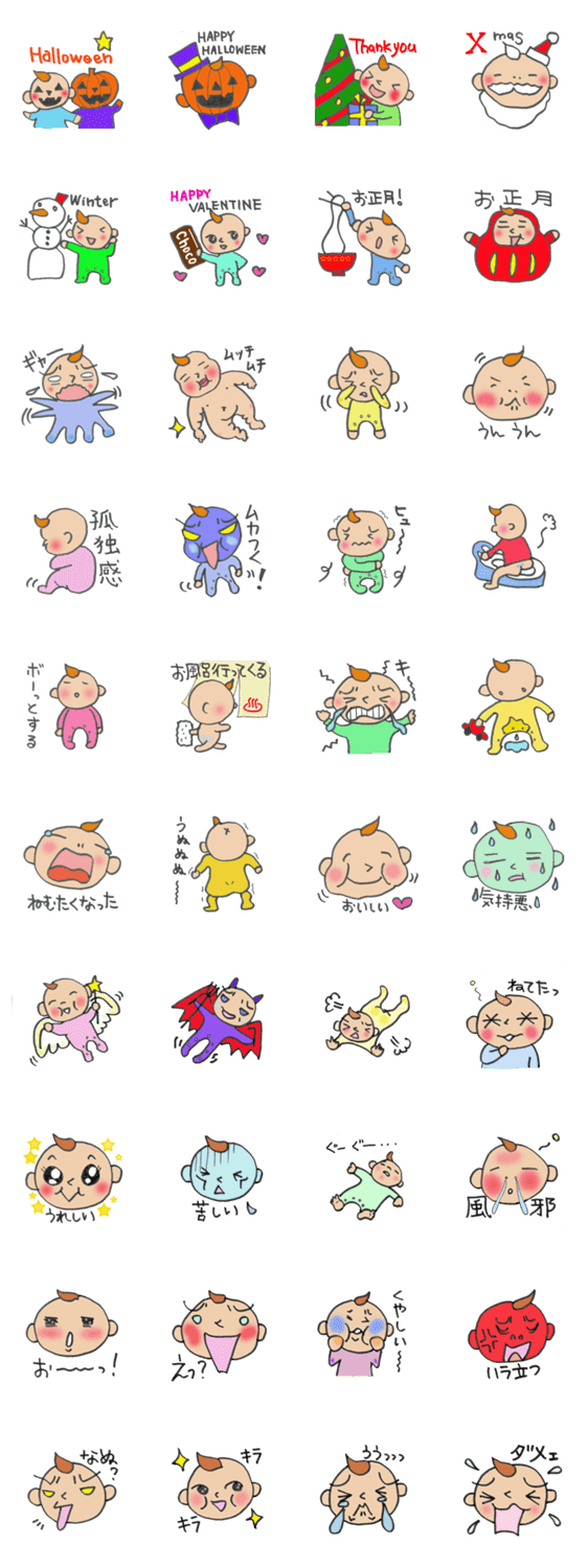 激しいな!ベイビー! ranco コメントをどうぞ 表情豊かな 赤ちゃんスタンプです。怒ったり泣いたり笑ったり。お正月やハロウィン クリスマスの行事スタンプもあります。 このスタンプどう思う?!↓クリックで投票♪好き (0)かわいい (0)かっこいい (0)おもしろい (0)使いやすそう (0)欲しい (0)萌え (0)ほっこりする (0)おしゃれ (0)ゆるい (0)こわい (0)ウザい (0)キモい (0)ムカつく (0)持ってる (0)癒される (0)セクシー (0)個性的 (0)私は買わない (0)誰かプレゼントして! (0) 購入・プレゼントする Facebookでシェア Twitterでシェア