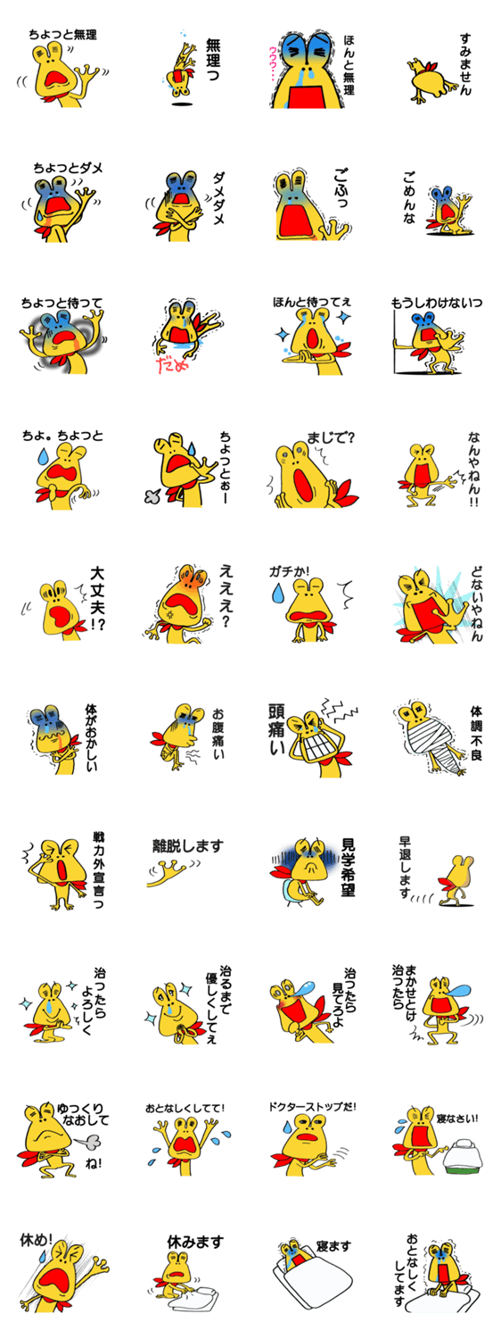 無理なカエル あきちゃん コメントをどうぞ 病弱なカエルが無理をアピールします。具合が悪い時に使えるスタンプです。 このスタンプどう思う?!↓クリックで投票♪好き (0)かわいい (0)かっこいい (0)おもしろい (0)使いやすそう (0)欲しい (0)萌え (0)ほっこりする (0)おしゃれ (0)ゆるい (0)こわい (0)ウザい (0)キモい (0)ムカつく (0)持ってる (0)癒される (0)セクシー (0)個性的 (0)私は買わない (0)誰かプレゼントして! (0) 購入・プレゼントする Facebookでシェア Twitterでシェア